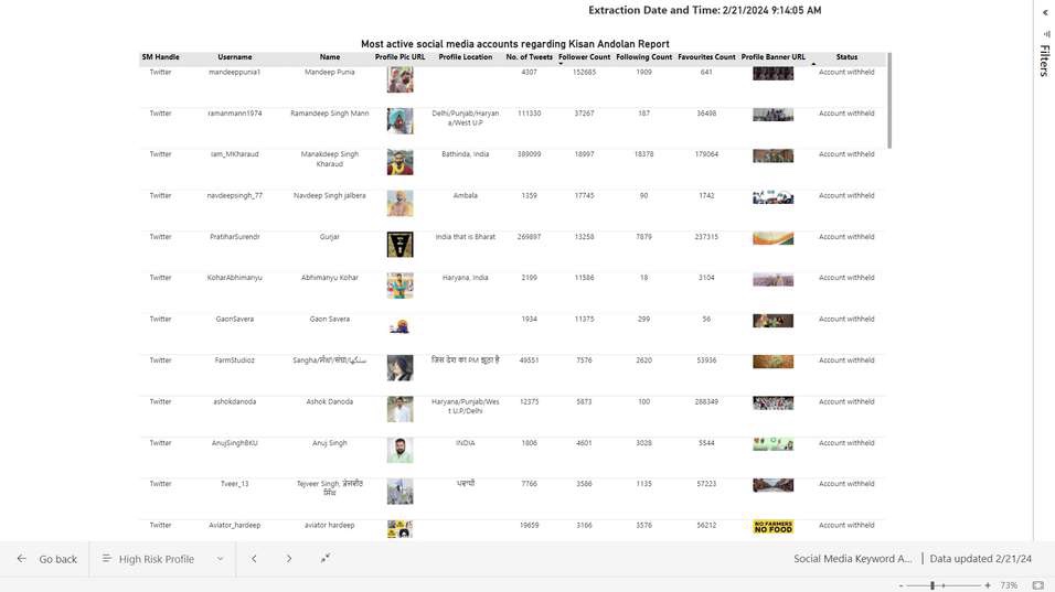 - Dashboard: Interactive visual summaries showing real-time trends, keyword spikes, profile activity, and regional insights.