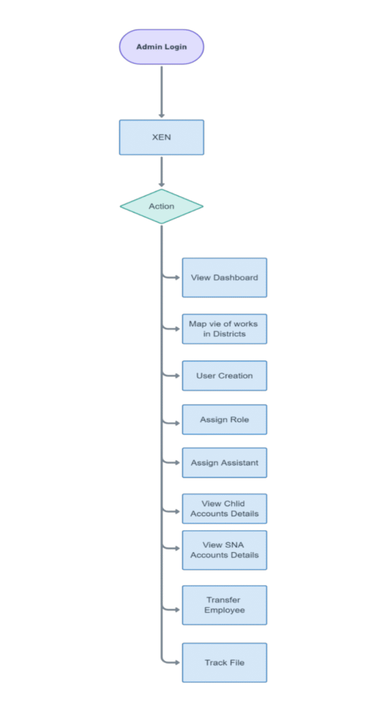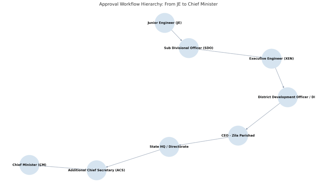 • Automated Approval Workflow: Dynamic routing based on sanction amount; from Zila Parishad to CM office.